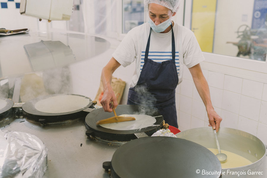 Depuis 5 générations, à la biscuiterie François GARREC, les crêpes sont étalées à la main à l’aide d’un rozell et les gâteaux sont moulés, dorés à la main et cuits sur plaques dans un four de boulanger selon la tradition artisanale.