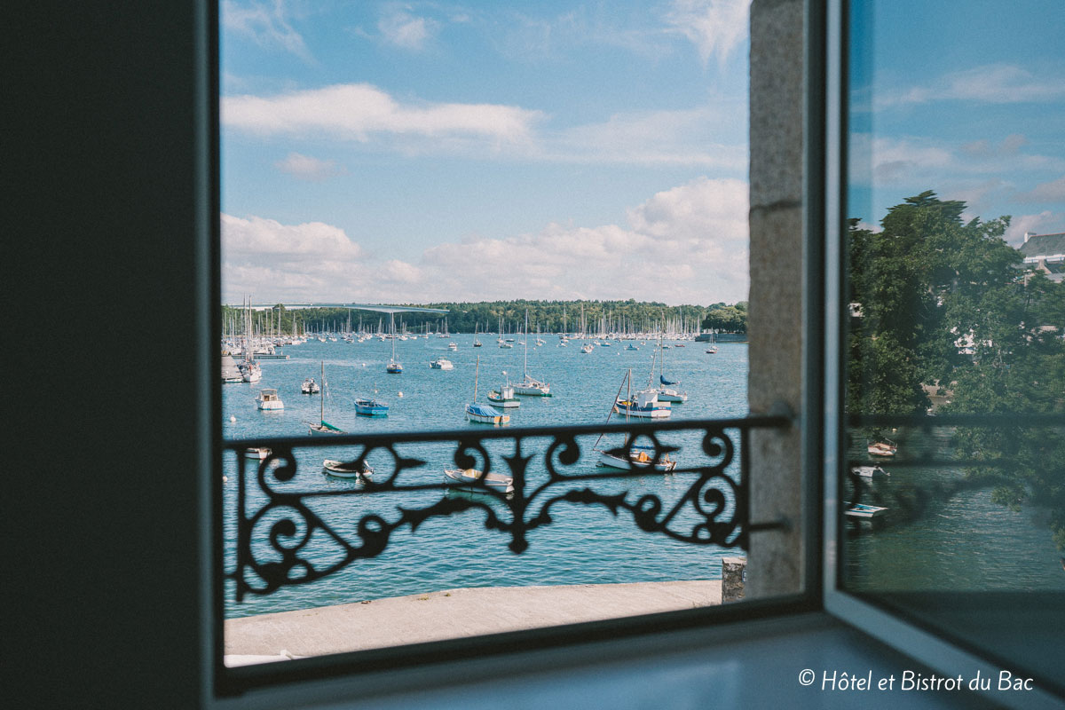 Sur le port de Sainte-Marine ⚓️, l’Hôtel & Bistrot du Bac vous accueille dans un cadre marin plein de charme, face aux eaux bleues et vertes de l’Odet.