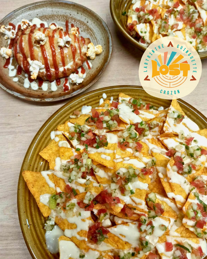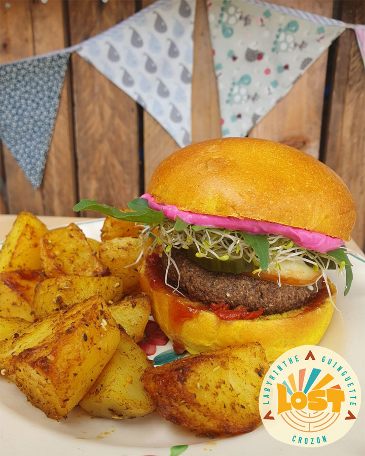 – La guinguette en libre accès : une CUISINE végétarienne, biologique et maison. Un BAR en plein air avec des boissons locales, des concerts et des jeux gratuits pour petits et grands.