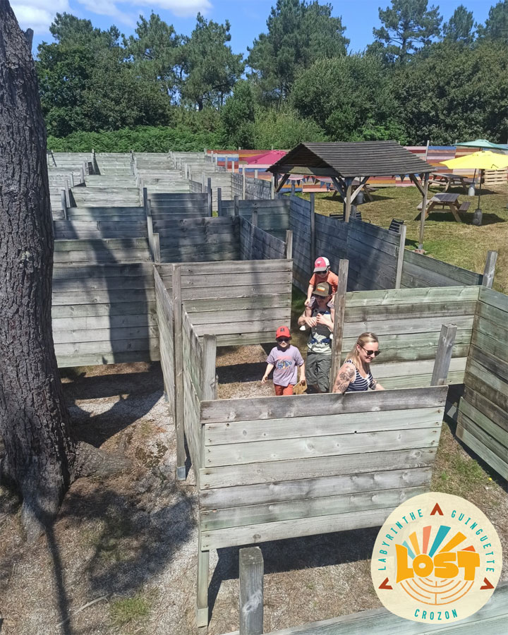 Explorez le labyrinthe géant en palissades de bois ou détendez-vous à la guinguette !